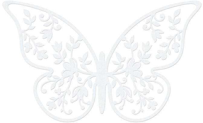 Gyönyörű fehér papír dekoráció pillangók formájában. Ezek az esküvői díszek tökéletesen kiegészítik az ünnepi asztalt. Méret: 8 x 5 cm. A csomag 10 darabot tartalmaz.