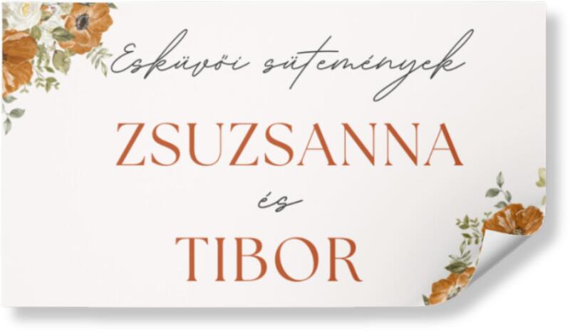 Mennyiség Darab ár 20 db - 40 db 175 ft 41 db és több  135 ft       A matricák rendelésének minimális darabszáma 20 db     m atricák mérete 9 x 6 cm   Színesítse esküvői ajándék dobozait az ősz különleges hangulatával egy őszi témájú, stílusos esküvői matricával. Ez a matrica a természet meleg színeivel harmonizál, lenyűgöző benyomást keltve az őszi varázslatban.   Szöveg kívánsága szerint         Kivételes ajándék       Személyes érintés   Készítsen egy gyönyörű szettet, és kombinálja ezt az esküvői matricát egy ugyanolyan dizájnú borcímkével, és gondoskodjon arról, hogy esküvője minden részlete tökéletes összhangban legyen.  Az előnézetek színe némileg eltérhet a nyomtatott termékektől.