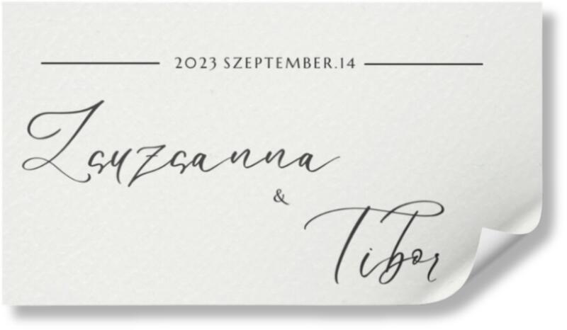 Mennyiség Darab ár 20 db - 40 db 175 ft 41 db és több 135 ft       A matricák rendelésének minimális darabszáma 20 db     A matricák mérete 9 x 6 cm   Kivételes, egyedi matrica csak Önnek és a varázslatos napjának. A matrica egyszerű stílusban készült, kalligrafikus fekete betűk teszik különlegessé. A neveket és dátumokat tartalmazó matricának köszönhetően az esküvője különleges és felejthetetlen lesz! Az egyszerű stílusú matricát úgy tervezték, hogy az elegancia és a kifinomultság érzését idézze az esküvőjére. Ezenkívül az esküvői sütemények ideális módja annak, hogy megajándékozza az esküvői vendégeket, hogy részesei voltak a nagy napnak   Szöveg kívánsága szerint        Kivételes ajándék      Személyes érintés   Készítsen egy gyönyörű szettet, és kombinálja ezt az esküvői matricát egy ugyanolyan dizájnú borcímkével, és gondoskodjon arról, hogy esküvője minden részlete tökéletesen összehangolt legyen. Az előnézetek színe némileg eltérhet a nyomtatott termékektől.