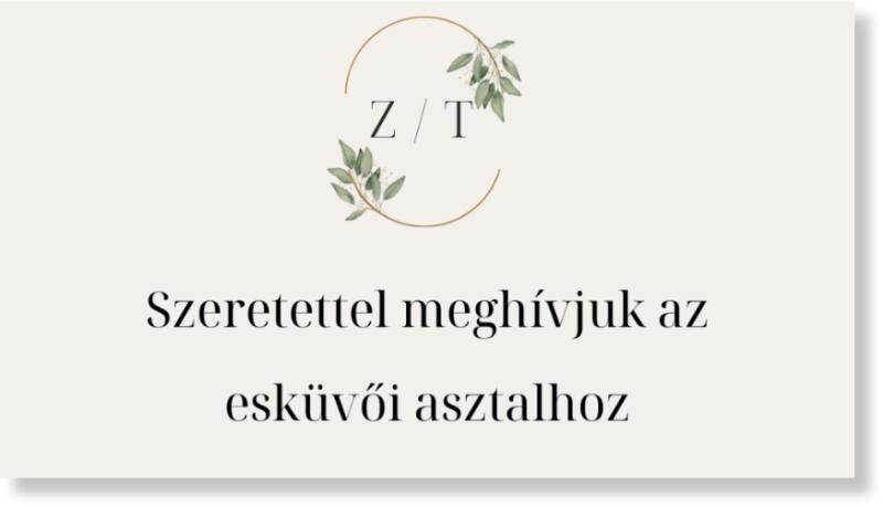 Mennyiség Cena za ks    1 db - 10 db 210 Ft  11 db - 30 db 155 Ft  31 db- 60 db 115 Ft  61 db és több 60 Ft     Minimális rendelési mennyiség 1 db-tól     A kártya mérete 9x5 cm    Hívja meg vendégeit esküvői fogadására eleganciával és stílusosan esküvői meghívóinkkal. Ez a meghívó egyszerű eukaliptusz témájú stílusban készült, hogy segítsen az esküvői fogadás összehangolásában, és kifejezze e különleges nap izgalmát.   Szöveg kívánsága szerint          Kivételes ajándék         Személyes érintés Készítsen egy gyönyörű készletet, és kombinálja ezt az esküvői asztali kártyát értesítővel, palack címkével , menüvel vagy matricával azonos dizájnnal, és gondoskodjon arról, hogy esküvője minden részlete tökéletes összehangban legyen. A szöveg rögzített és nem módosítható.